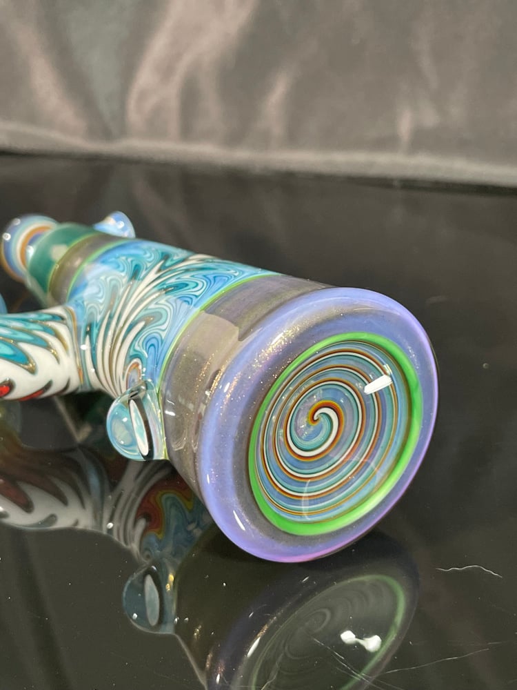 Colors: Telemagenta over Jackpot and Neptunium Fire and ice lined tubing made by me 10mm - 3 Hole Matching Martini Included 8 Inches Tall Sig Millie